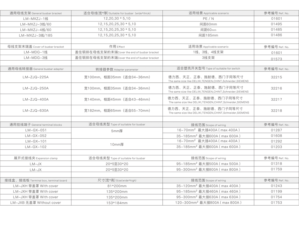 通過導(dǎo)線連接夾或接線板可把最大300mm2的導(dǎo)線連接在不打孔的母線上,而且不用截?cái)鄶嗑€即可使用接線板連接兩個(gè)母線系統(tǒng)。展開式連接夾利用超強(qiáng)度卡接技術(shù)可實(shí)現(xiàn)圓形和扁平導(dǎo)線的快速連接。母線加長(zhǎng)連接夾可安全方便地實(shí)現(xiàn)母線系統(tǒng)的擴(kuò)展。